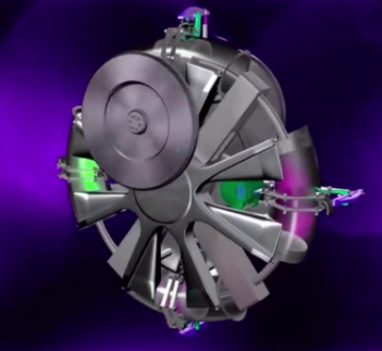 環(huán)缸式圓形轉(zhuǎn)子發(fā)動(dòng)機(jī)的氣缸為中空?qǐng)A輪環(huán)形,異形連桿斷面呈“S”形,氣缸通過(guò)左右氣缸座、軸承與中央軸連接呈游離狀態(tài),異形連桿也通過(guò)一對(duì)軸承與左右汽缸座固定呈游離狀態(tài),右氣缸座上固定有中空傳動(dòng)輪,輪內(nèi)設(shè)置有行星齒輪與凸輪機(jī)構(gòu)